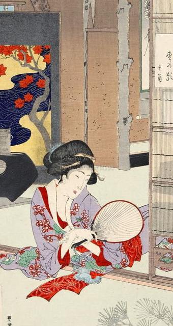 > 月岡芳年 - 月百姿:名月や畳の上に松の影 其角