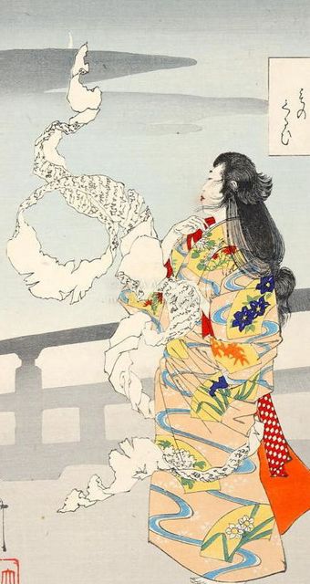 > 月岡芳年 - 月百姿:月のものくるひ 文ひろけ