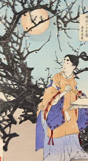 月岡芳年 - 月百姿:月輝如晴雪 梅花似照星 可憐金鏡転 庭上玉房馨 菅原道真