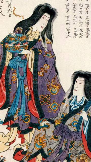 歌川国貞 - 有卦ニ入る和合之福神:子十一月六日火性之人うけに大入