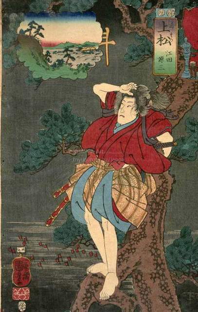 > 歌川国芳 - 木曾街道六十九次之内:三十九:上松 江田源三
