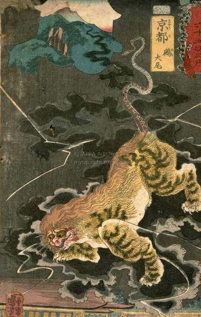 > 歌川国芳 - 木曾街道六十九次之内:京都:鵺大尾