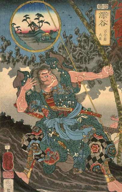 > 歌川国芳 - 木曾街道六十九次之内:十:深谷 百合若大臣