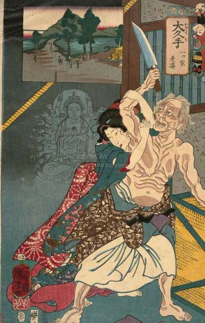 > 歌川国芳 - 木曾街道六十九次之内:四十八:大久手 一ッ家老婆