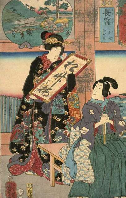 > 歌川国芳 - 木曾街道六十九次之内:廿八:長窪 お七 吉三