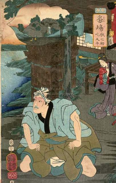 > 歌川国芳 - 木曾街道六十九次之内:番場:歌之助:吃又平 六十三