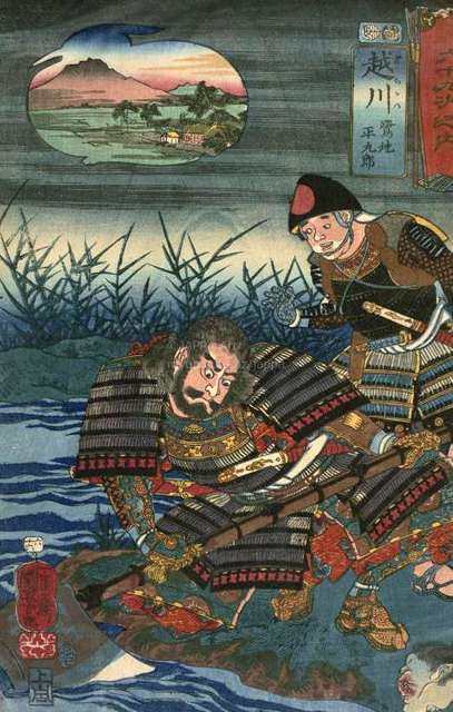 歌川国芳 - 木曾街道六十九次之内:越川:鷺地平九郎 六十六