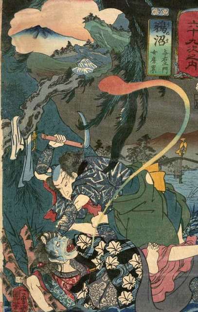 歌川国芳 - 木曾街道六十九次之内:鵜沼:与右エ門:女房累 五十三