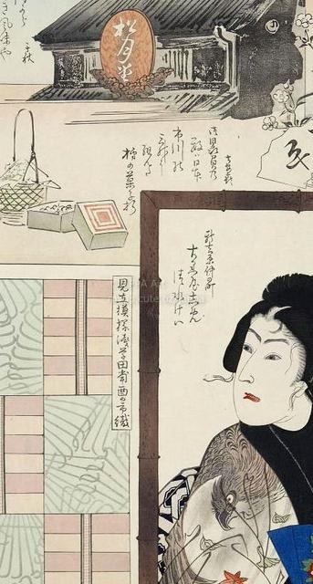 > 梅素薫 - 東京じまん名ぶつ会:富本半平:菓子舗 松月堂:新吉原仲の町 大黒屋しめ 清水けい:見立模様浅草田甫酉の市織