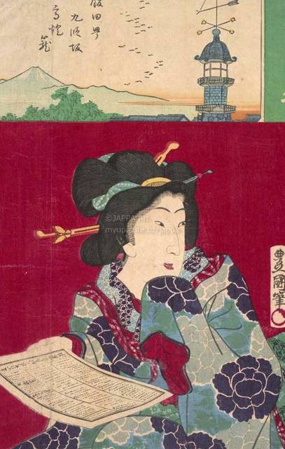 > 歌川国貞 (2代目) - 東京名所:飯田甼九段坂高燈籠