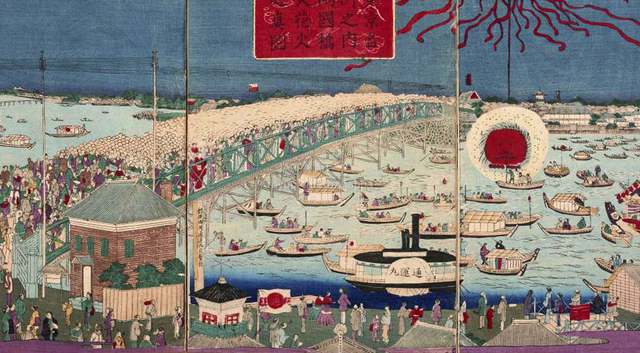 > 豊原周春 - 東京名所之内兩國橋大花火之真圖