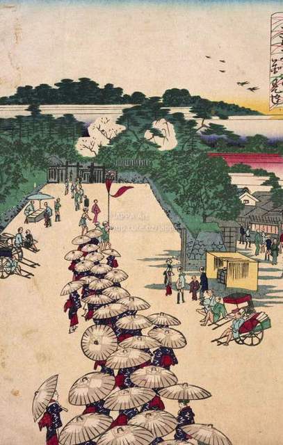 昇斎一景 - 東京名所四十八景:上野黒門前花見連:第六