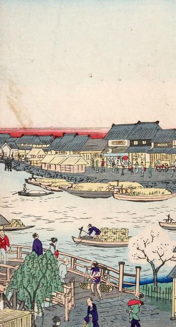 東京名所四十八景:小綱丁箱崎橋よりミなとはし遠景