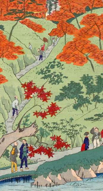 昇斎一景 - 東京名所四十八景:海案寺乃紅葉