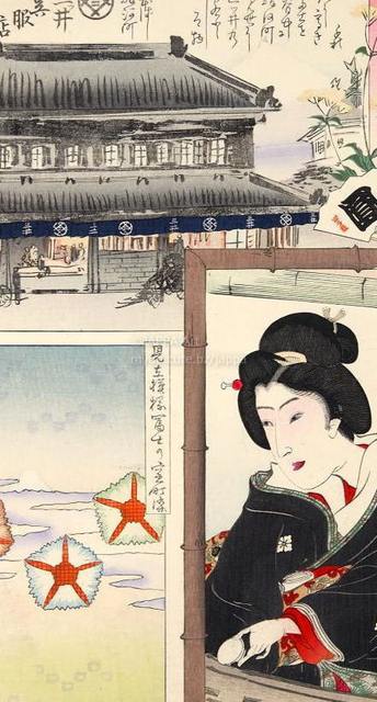 梅素薫 - 東京自慢名ぶつ会:松林右圓:三ツ井呉服店:柳はし 小林はま子:見立模様富士の室町染