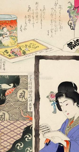 梅素薫 - 東京自慢名物会:三住家勝冶郎:ビラ辰:調製本舗 倉田屋 小峰文次郎:竹本綾之助 藤田その:見立模様神田明神画革