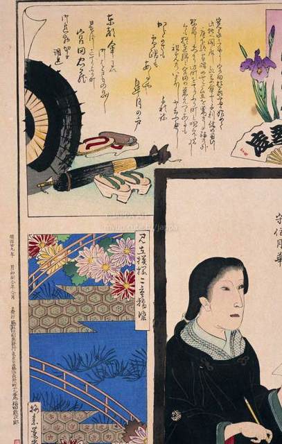 梅素薫 - 東京自慢名物会:宝井琴凌:ビラ辰:宮田忠藏 傘るい、御はきもの:女優粂八 守住月華:見立模様二重橋染