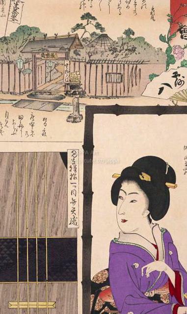> 梅素薫 - 東京自慢名物会:松乃家露八:生蕎麥 萬盛庵 平野勝三郎:新吉原仲の町まちたや花子 町田幾舞:見立模様一ツ目弁天織