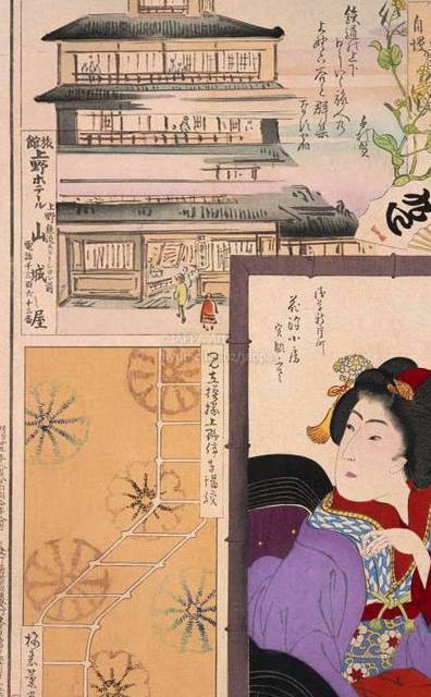 梅素薫 - 東京自慢名物会:柳家小さん:ビラ辰:旅館上野ホテール山城屋:浅草新片町 花澤小房 宮脇ふさ:見立模様上野停車場絞