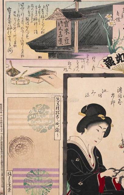 梅素薫 - 東京自慢名物会:桃川如燕:ビラ辰:寶来屋 福住吉兵衛 寶来豆 つくだ煮:よし町 濱田屋太郎 池田みね:見立模様よし町織り
