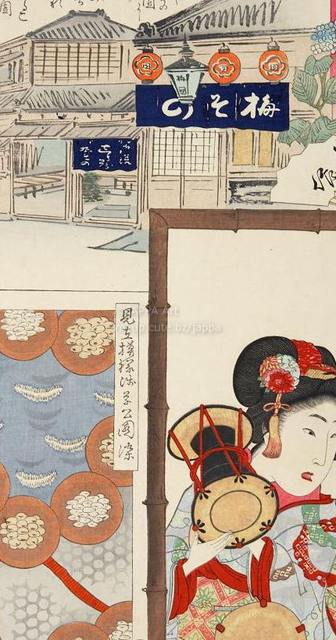 > 梅素薫 - 東京自慢名物会:桜川孝作:浅草公園 仲見世 梅園 御膳しるこ:新よし原 林屋つる子 鈴木たき:見立模様浅草公園染