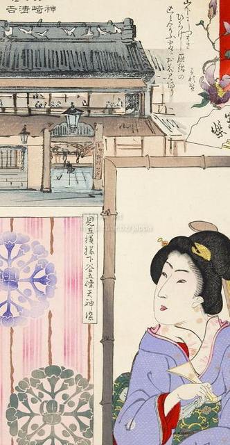 > 梅素薫 - 東京自慢名物会:桜川笑樂:がんなべ 神埼淸吉:新よし原仲の町 大吉 内かま 今泉ひさ:見立模様下谷五條天神染
