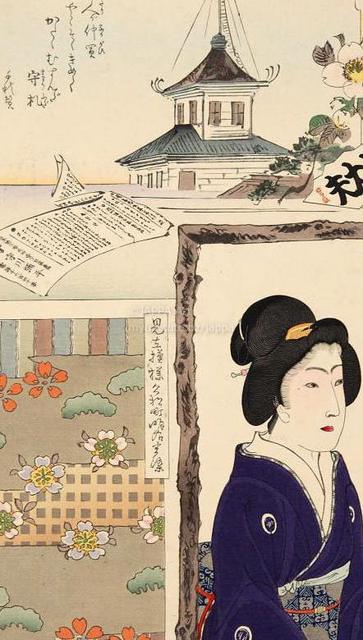 > 梅素薫 - 東京自慢名物会:竹本相生太夫:ビラ辰:守川彌平:よし町三輪家きんし 岩本きん:見立模様久松町明治座染