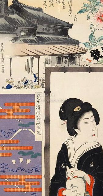 梅素薫 - 東京自慢名物会:談洲楼燕枝:ビラ辰:魚問屋 伊勢吉:新ばし小松屋ゑん 川瀬のぶ:見立模様駿河町染