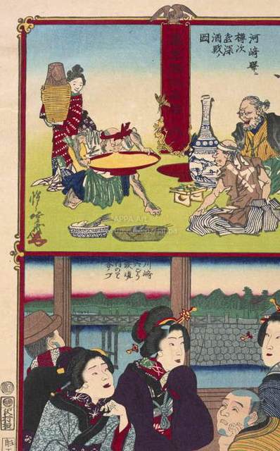 河鍋暁斎, 歌川芳虎 - 東京開化名勝ノ内:河崎駅ニ樽次底深酒戦ノ図:川崎六ごう鉄道ノ内のり合ノづ