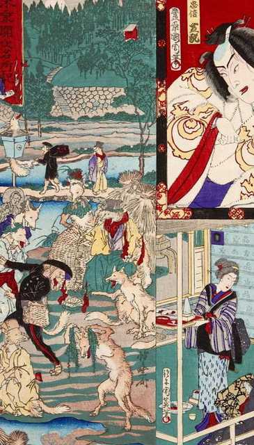 > 河鍋暁斎, 豊原国周 - 東京開化名所記:王子稲荷社:狐忠信 芝翫