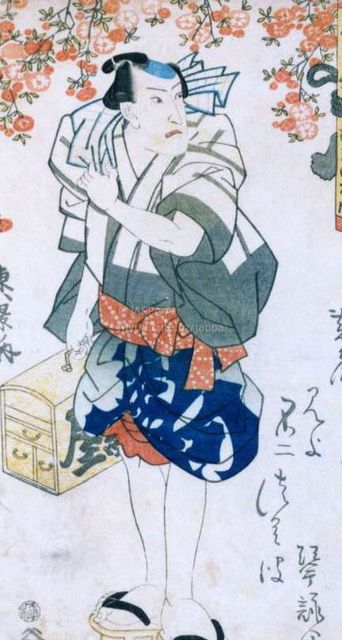 > 歌川国貞 - 東八景ノ内 中村歌右衛門:花に積深川の帰帆