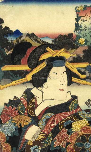 > 歌川国貞 - 東海道 戸塚藤沢 間、大坂 逢坂