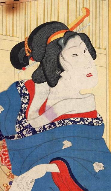 主页 > 歌川国貞 (2代目) > 歌川国貞 (2代目) - 柳橋げい者おと里:柳橋おしやく小ひさ:十二時秘図試歳丸 亥ノ刻:厄除の川崎帰