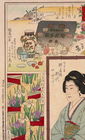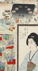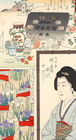 東京自慢名物会:桜川善六:小間もの商 万屋吉:新よし原仲之町 松本やっこ 延しん娘小林きん:見立模様江戸橋郵便三ツ菱染