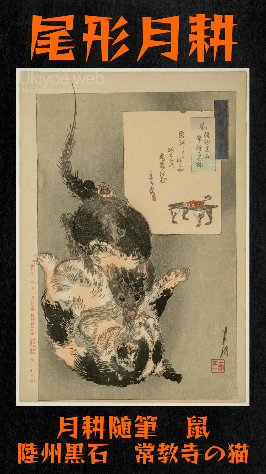 > 尾形月耕 - 月耕随筆 鼠 陸州黒石 常教寺の猫