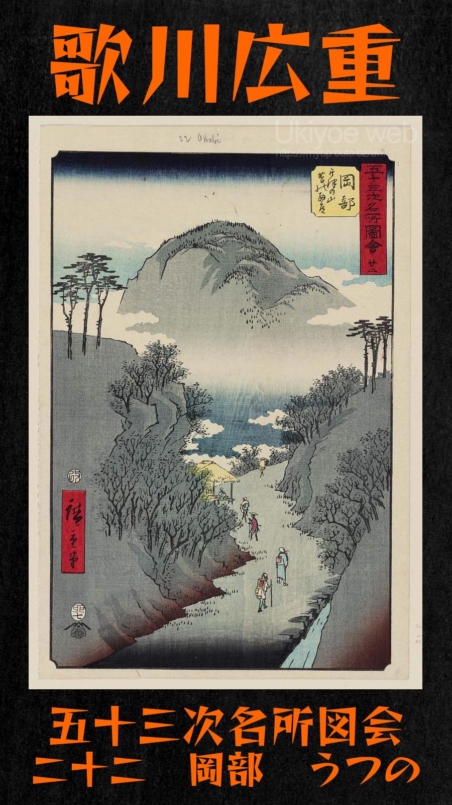 | Title | No. 22 Okabe: The Narrow Ivy-Covered Road at Mt. Utsu (Okabe Utsu no yama tsuta no hosomichi) from the series Famous Sights of the Fifty-three Stations (Gojusan tsugi meisho zue) also known as the Vertical Tokaido |