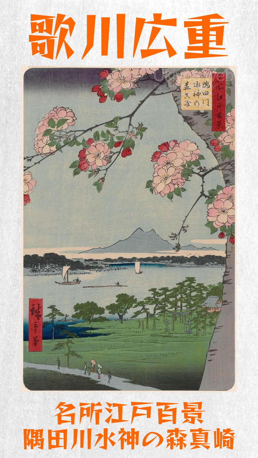 أوتاغاوا هيروشيغي - ضريح سويجين وماساكي على نهر سوميدا (سوميداجاوا سويجين نو موري ماساكي) ، من سلسلة مائة منظر مشهور لإيدو (ميشو إيدو هياكي)