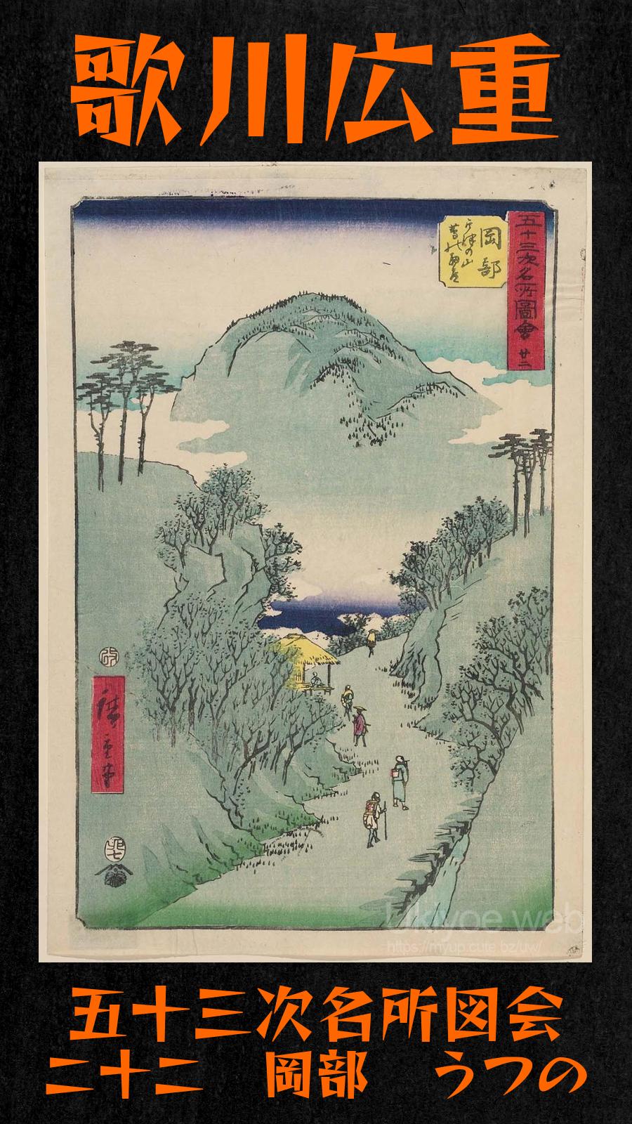 | Title | No. 22 Okabe: The Narrow Ivy-Covered Road at Mt. Utsu (Okabe Utsu no yama tsuta no hosomichi) from the series Famous Sights of the Fifty-three Stations (Gojusan tsugi meisho zue) also known as the Vertical Tokaido |