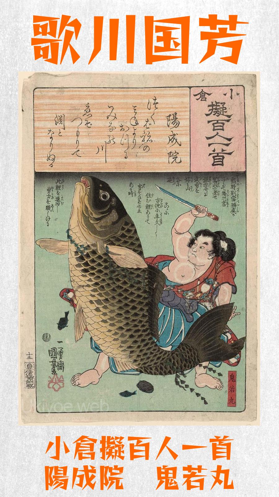 > 歌川国芳 - 小倉擬百人一首 陽成院 鬼若丸