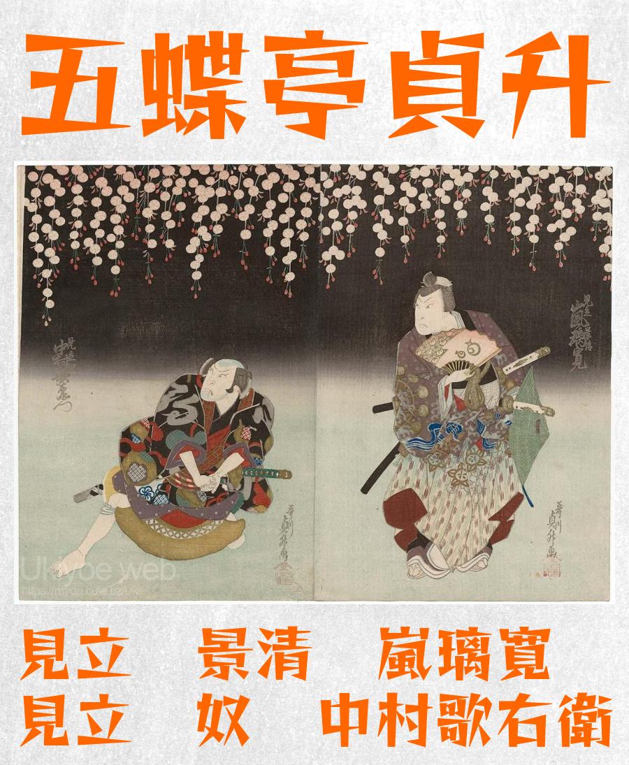 | Title | Actors in Imagined Roles (Mitate): Arashi Rikan II as Kagekiyo (R) and Nakamura Utaemon III as a Footman (Yakko) (L) |
