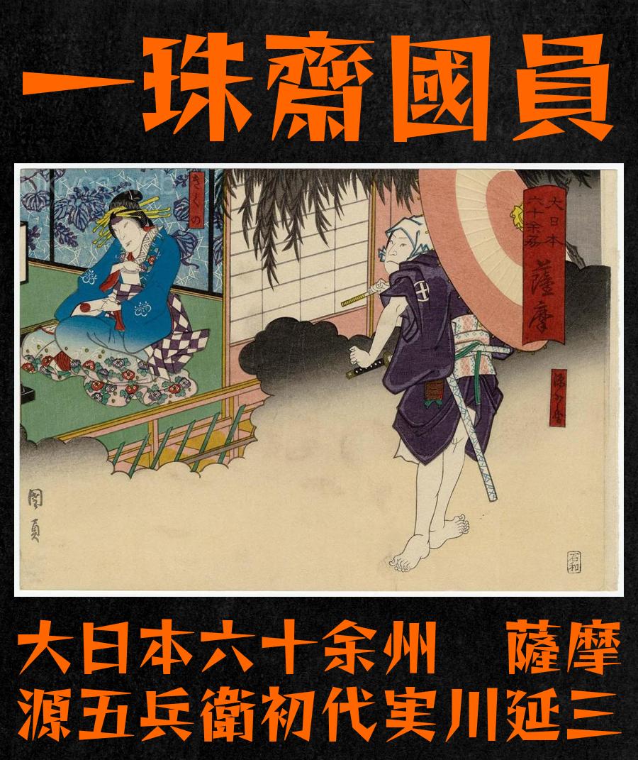 Home > Isshusai Kunikazu > Isshusai Kunikazu - Satsuma Province: (Actors Jitsukawa Enzaburo I as) Gengobei and (Nakayama Nanshi II as) Kikuno from the series The Sixty-odd Provinces of Great Japan (Dai Nippon rokuju yo shu)