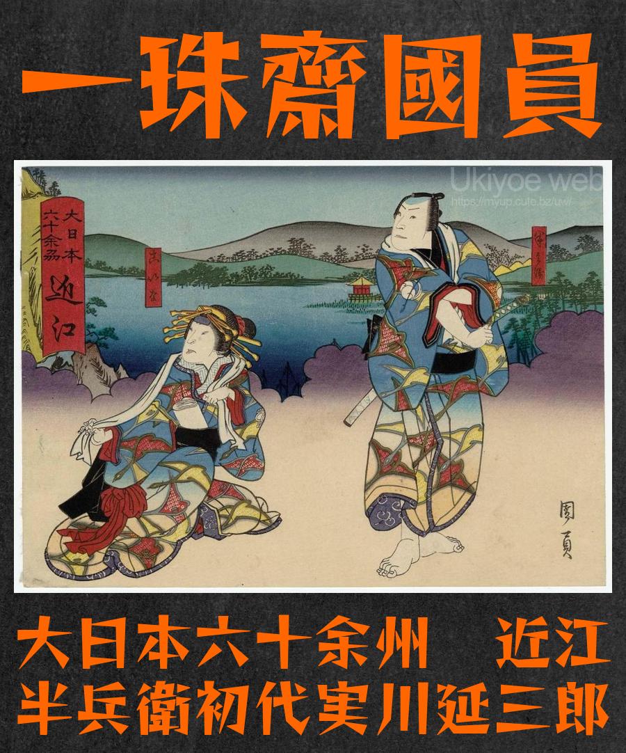 Home > Isshusai Kunikazu > Isshusai Kunikazu - Omi Province: (Actors Jitsukawa Enzaburo I as) Hanbei and (Nakayama Nanshi II as) Koina from the series The Sixty-odd Provinces of Great Japan (Dai Nippon rokuju yo shu)