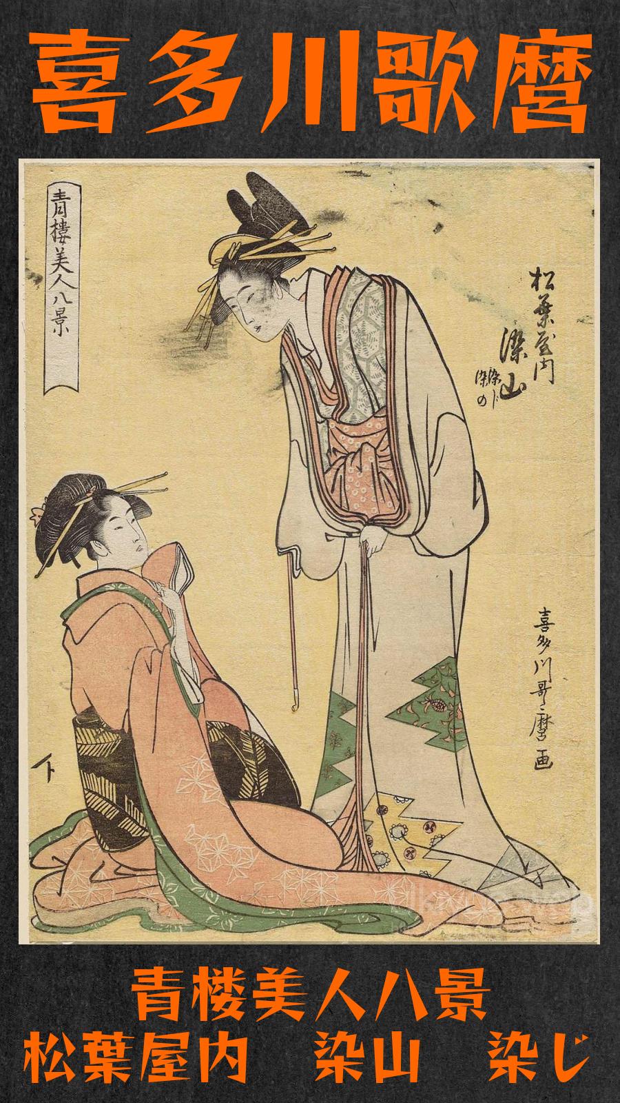 > 喜多川歌麿 - 青楼美人八景 松葉屋内 染山 染じ 染の